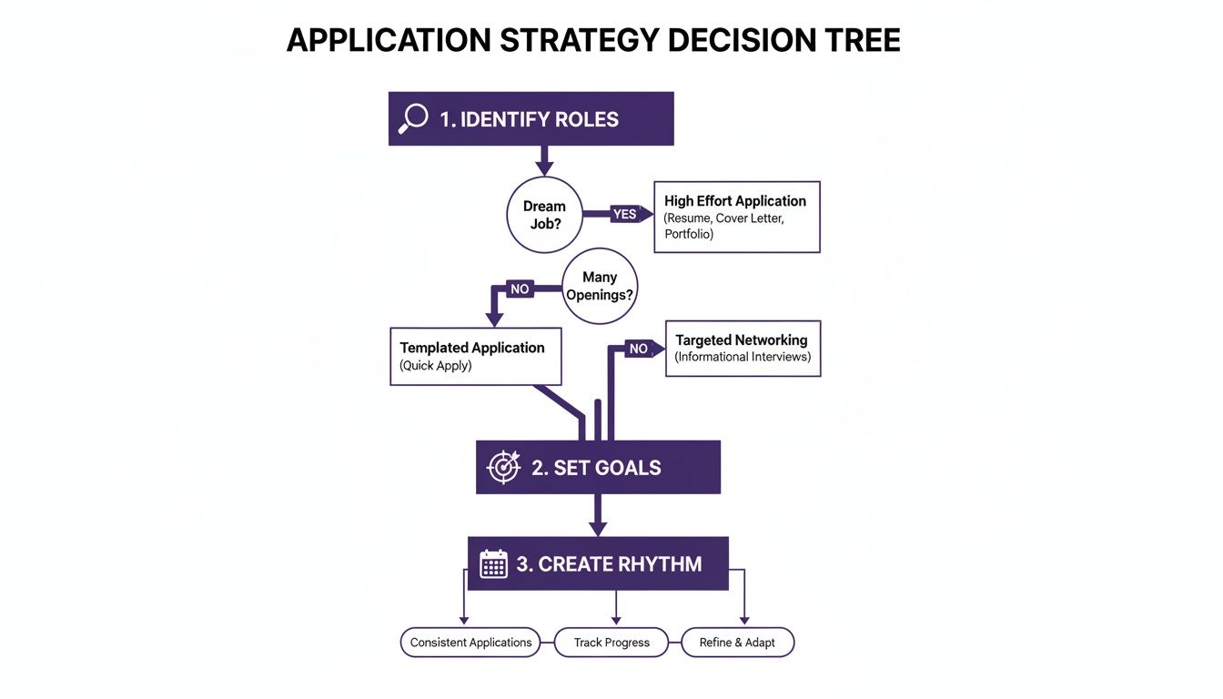 As the flowchart shows, a winning strategy starts with knowing exactly what roles you're targeting, setting clear goals, and then building a consistent rhythm to get you there.