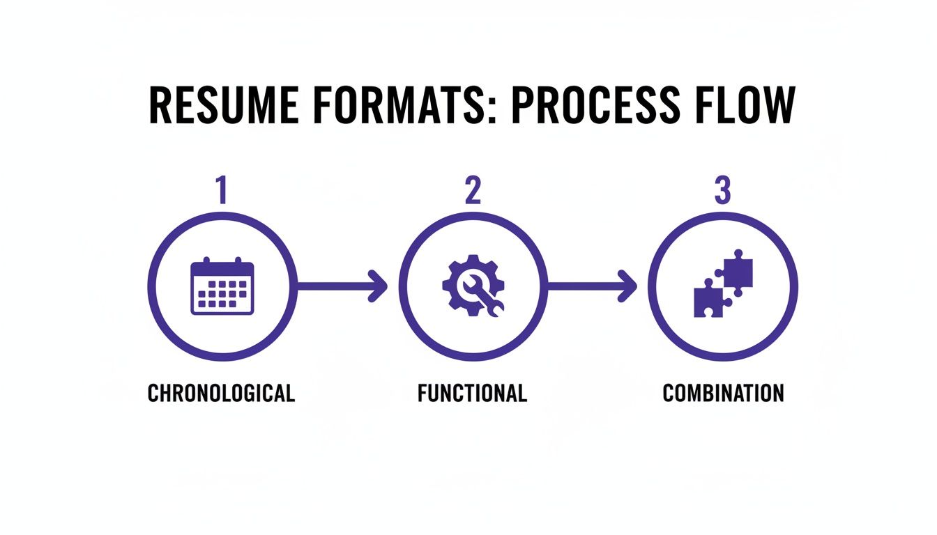 Before you even think about writing a single bullet point, you need to decide on your resume's format. This isn't just about aesthetics; it’s a strategic decision that frames your entire professional story for both the recruiting software (ATS) and the actual human on the other side.