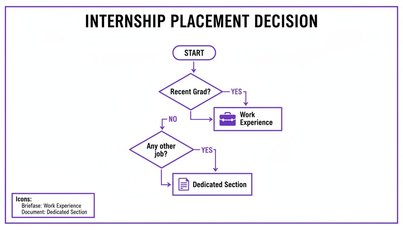 Deciding where to put your internship on a resume isn't just a formatting choice—it's a strategic move. Get it right, and recruiters instantly see your most valuable qualifications. Get it wrong, and you might as well have buried your best experience.