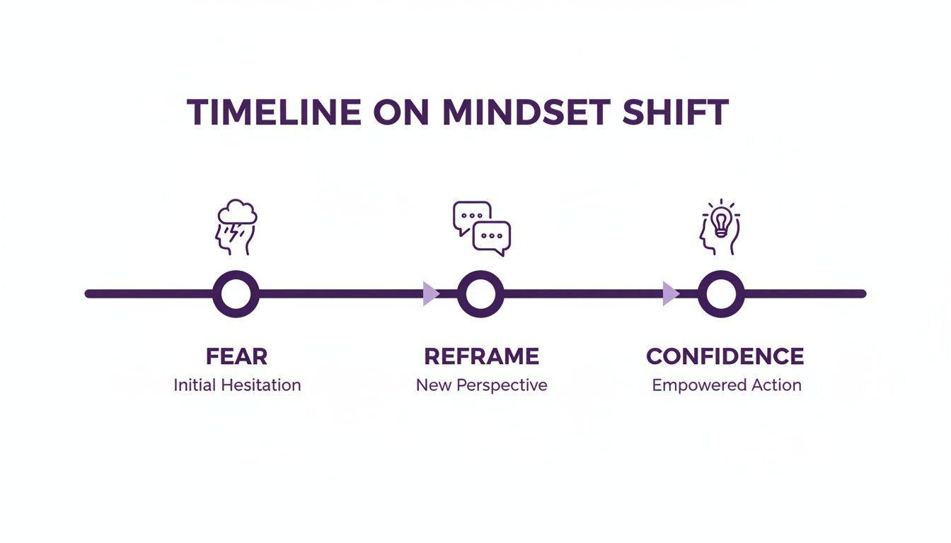 This isn't about slapping on a fake smile or pretending you're not nervous. It's about consciously shifting your perspective from a place of fear to one of genuine opportunity. Stop seeing the interview as a hostile interrogation and start reframing it as a two-way street. You aren't just being judged; you're also figuring out if this company is a place where you can actually do your best work.