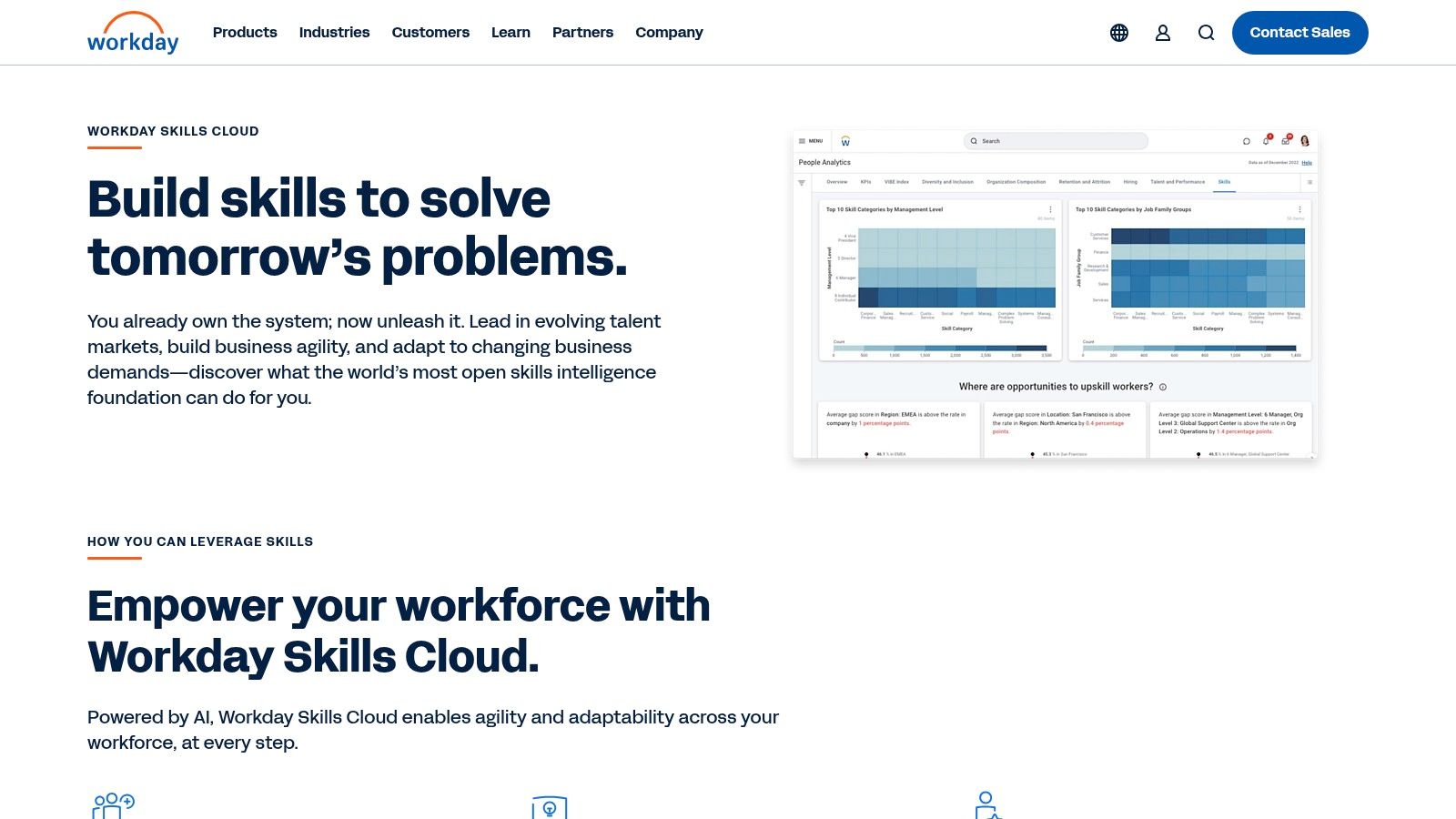 - Integrated HR Workflows: Embeds skills data directly into recruiting, internal mobility, and learning modules to match talent to opportunities and suggest relevant training.