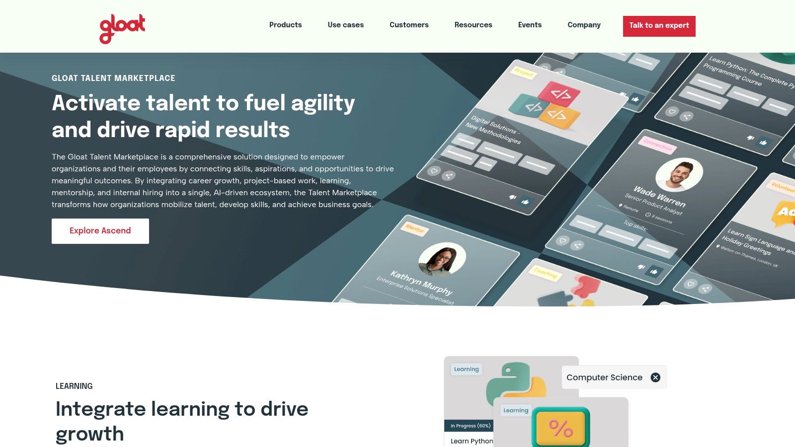 Gloat is an AI-powered talent marketplace that shifts the focus from simply identifying skills gaps to actively closing them through internal mobility. It functions as a dynamic internal ecosystem, connecting employees to projects, gigs, mentorships, and full-time roles based on their skills and development goals. This makes it a proactive tool for workforce agility and one of the most action-oriented skills gap analysis tools available for large enterprises.