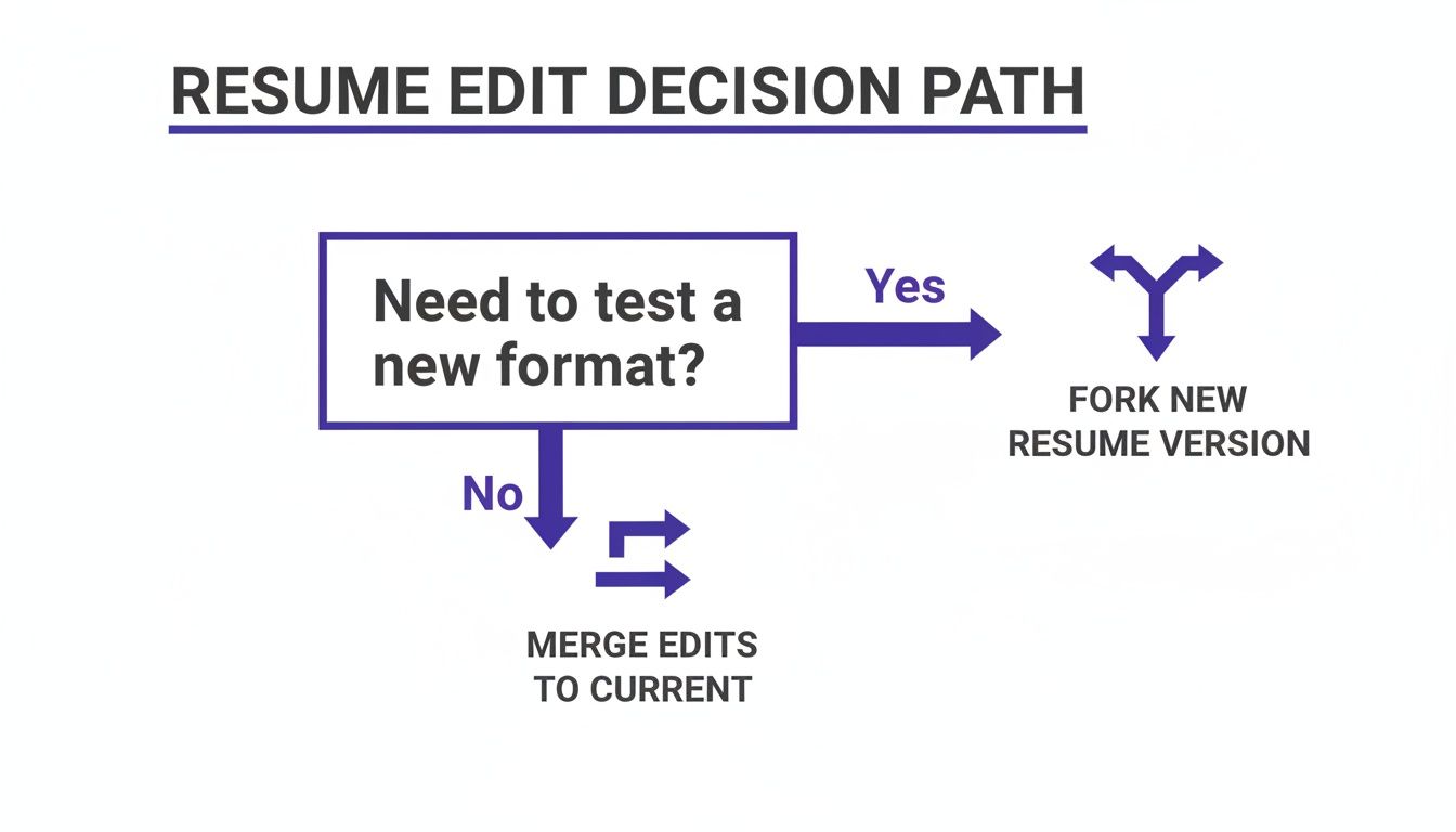 Branching is like creating a "what-if" world for your resume. You can create a branch to test out a radical new design or a completely different, skills-focused format without touching your main, approved version. It’s your own personal sandbox to experiment freely.